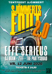 Maak je klaar voor Sjömmerts Fout 2.0! Dit jaar zorgen DJ Bram, ZEFF, The Partysquad en dé sensatie van vorige zomer, Effe Serieus (Baila de Gasolina), ervoor dat de tent in Sjömmert compleet ontploft!